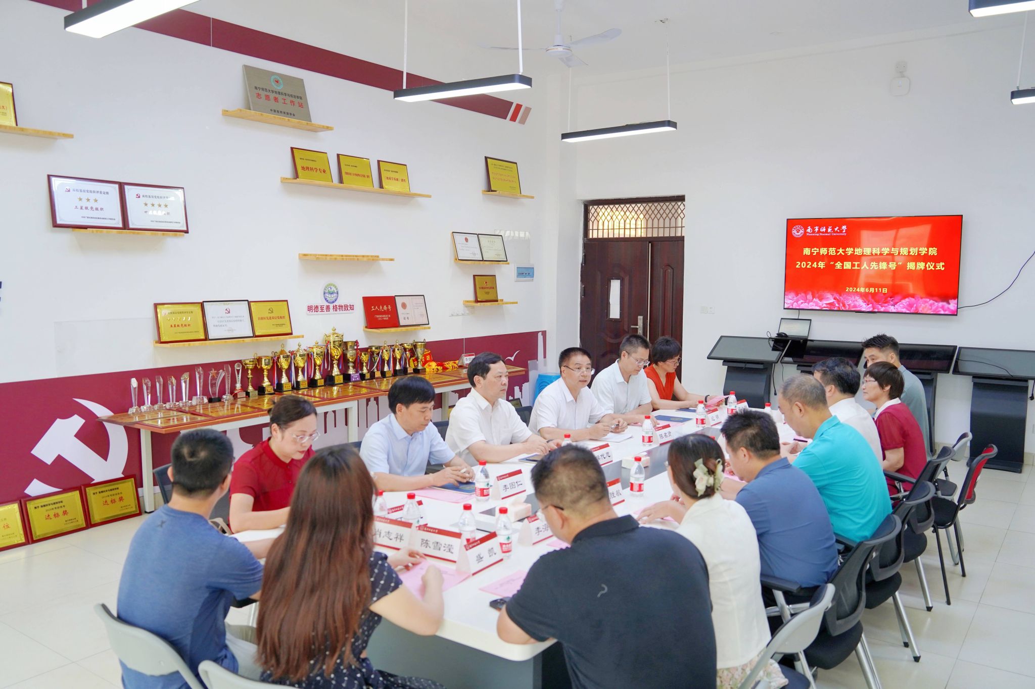 6月11日,学校在武鸣校区地源楼为 成人影视片 荣获的2024年“全国工人先锋号”举行揭牌仪式。学校党委副书记、工会主席侯代忠,校工会、组织部、宣传部等部门负责人, 成人影视片 领导班子成员及教师代表,地理与海洋研究院和环境与生命科学学院代表参加活动。