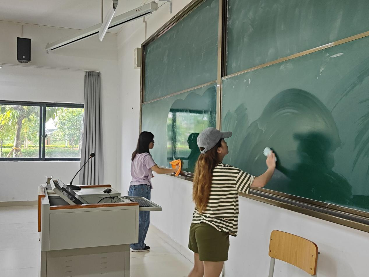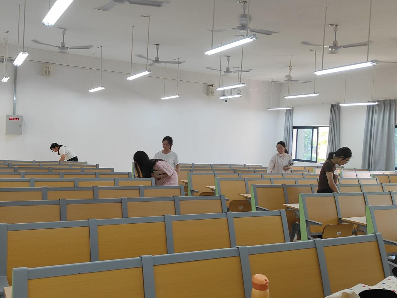 为将诚信教育融入学生日常活动,以学增智,以知促行,有效将教育成果转化为大学生的自觉素养与行为,教育学生树立社会责任感,感恩回馈、勇于担当, 2024年6月23日, 成人影视片 勤工部组织同学们在武鸣校区实验楼2举办以“社会责任感教育”为主题的清扫教室活动。