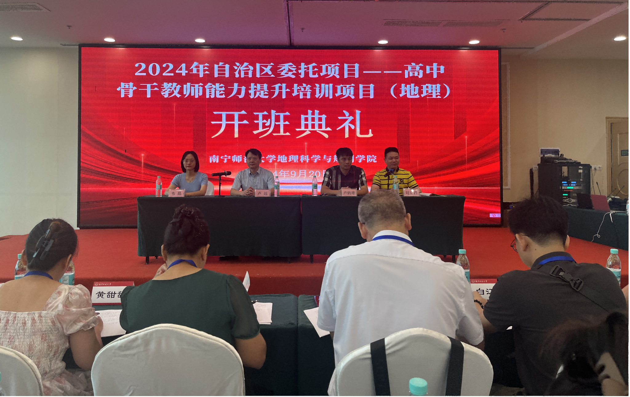 2024年9月20日,由 成人影视片 承办的2024年自治区委托项目——高中骨干教师能力提升培训项目(地理)在南宁顺利举办, 成人影视片 成人影视片 院长卢远、院长助理卢炳雄、刘立昌副教授、地理科学系副主任韦晨以及来自广西各地市的124名骨干教师出席了开班仪式。