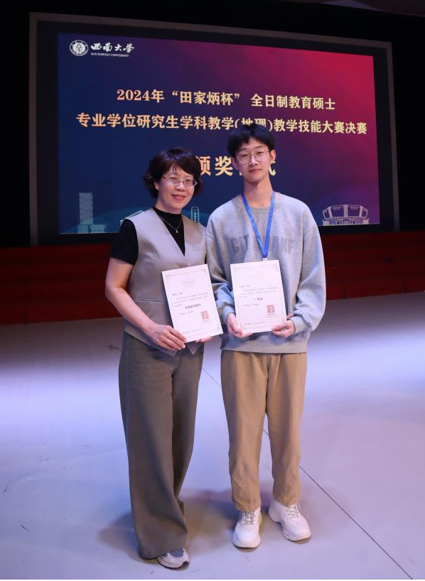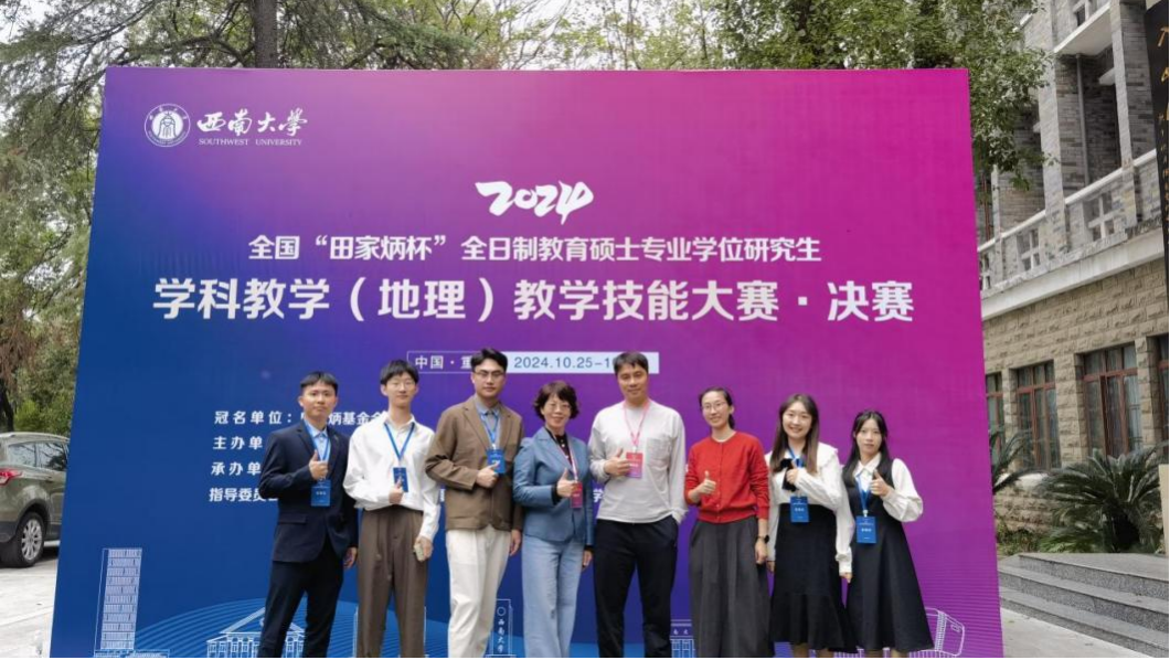 日前,第三届“田家炳杯”全日制教育硕士专业学位研究生学科教学(地理)教学技能大赛决赛结果公布。由 成人影视片 廖伟业、卢炳雄、梁浩原、张胜前老师领队并指导的2023级学科教学(地理)专业5位参赛同学与全国131位选手决赛竞技,再创佳绩。其中郭金沙荣获一等奖,徐梦龙荣获二等奖,黄飞扬、吴镜佚荣获三等奖,覃石凤荣获优秀教学设计奖,廖伟业老师、张胜前老师获得优秀指导教师奖。