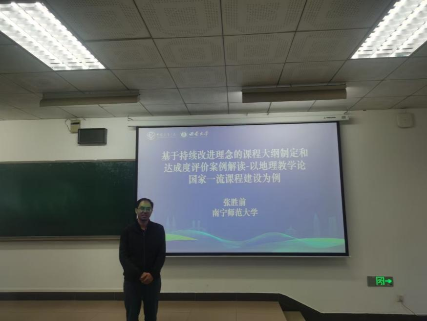 会上, 成人影视片 张胜前教授在“地理教学模式创新与地理课程发展”第三分会场做了题为“基于持续改进理念的课程大纲制定和达成度评价案例解读——以地理教学论国家一流课程建设为例”的专题交流,分享了教学大纲的功能、教学大纲制定的核心要素和课程教学大纲达成评价的主要路径和课程达成报告的撰写等内容。此外,张胜前教授还参与了10月28日下午召开的“中学地理课”育人价值的专题论坛。