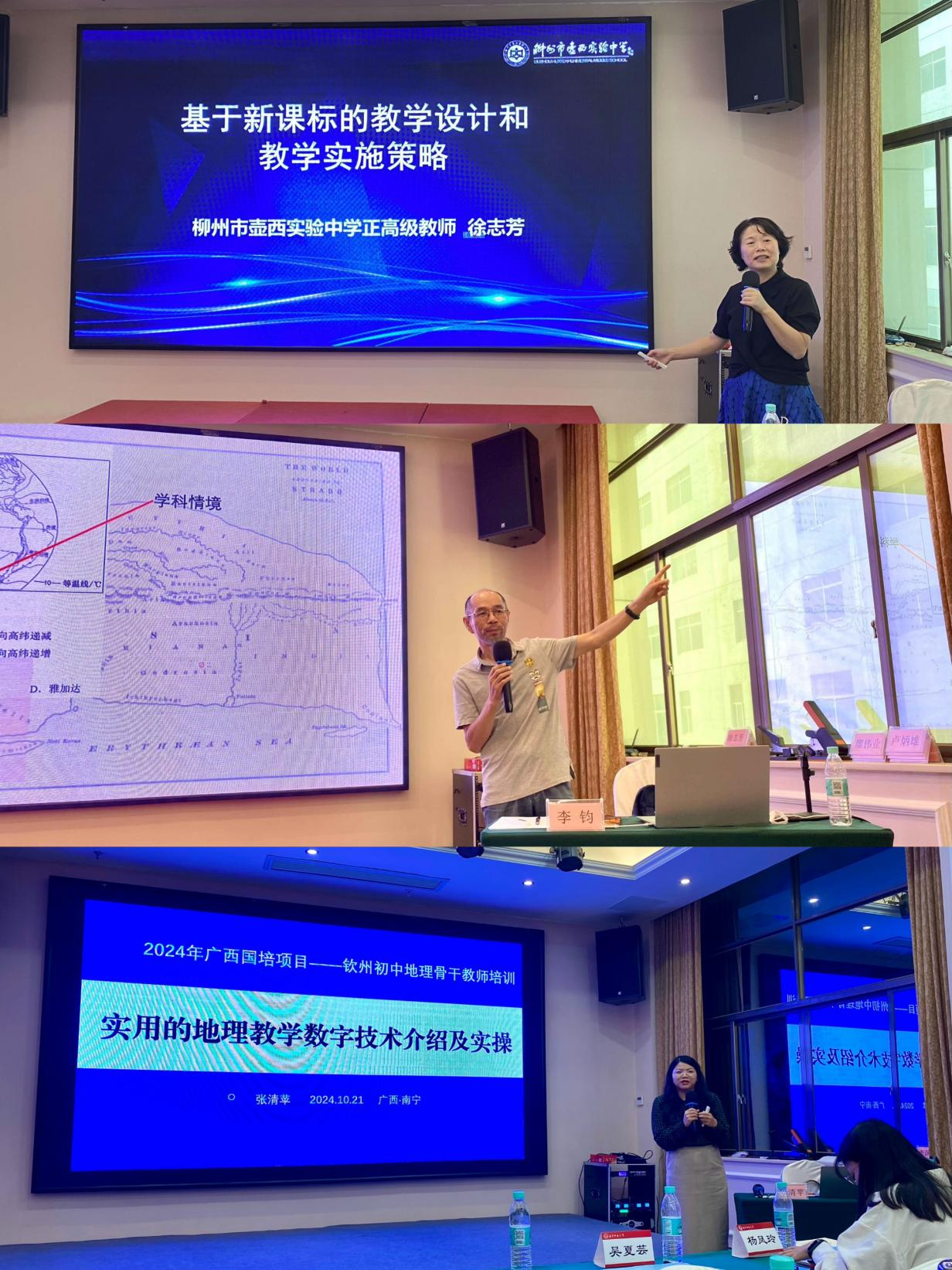 集中培训阶段,钦州市委教育工委专职副书记陆杉、 成人影视片 廖伟业副教授、柳州市壶西实验中学党委书记徐志芳、南宁市教育科学研究所高级教师李均、南宁市邕宁高级中学一级教师、科研处主任张清苹等专家为学员们带来了精彩讲座,并与学员们进行了热烈交流与讨论。讲座围绕“做一名德才兼备的优秀地理教师”“新课标背景下教学目标叙写的技术路径”“基于新课标的教学设计和教学实施策略”“基于问题解决的初中地理教学”“实用的地理教学技术工具介绍”等专题,帮助学员提高师德水平、重视地理核心素养、提升教研能力、加强命题能力、更新教育观念、转变教育行为、增强地理信息技术运用能力,增进对义务教育课程标准的理解、进一步了解当前义务教育改革发展的最新动态和趋势,促进教师专业成长。
