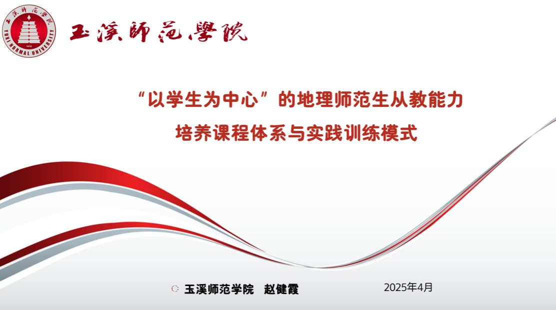 玉溪师范学院赵健霞老师以“以学生为中心的地理师范生从教能力培养课程体系与实践训练模式”为主题,分享了该校完善师范生从教能力培养课程体系和师范类课程教材建设经验,通过搭建“校地合作”“校校合作”平台,实施“分阶段训练+四层竞赛”模式,有效提升了学生的从教能力和实战经验,学生在各级各类竞赛中屡获佳绩。