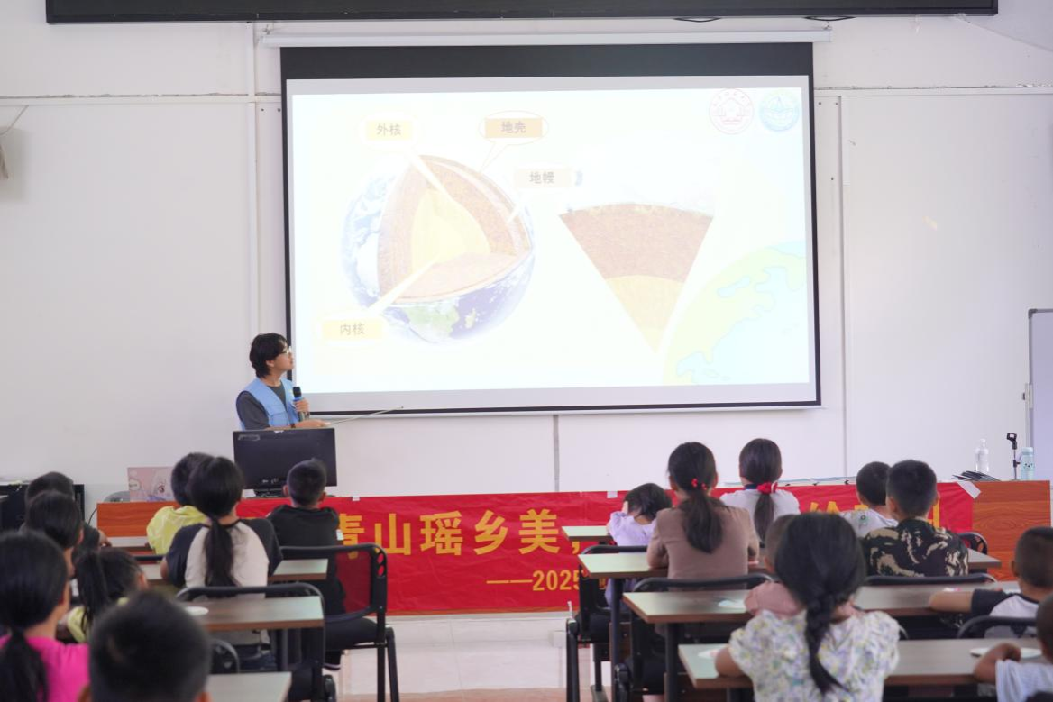 2025年7月18日, 成人影视片 “青系白裤,团耀里湖”实践团在南丹县里湖瑶族乡朵努社区科普宣传室开展了一场妙趣横生的地理科普活动。实践团队员结合专业特色,通过生动讲解、趣味互动和手工实践,带领社区小朋友们探索地球奥秘,激发他们对地理科学的兴趣。