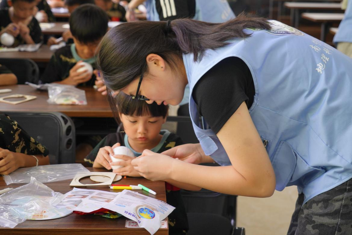 本次地理科普活动分上下午两场开展,上午的课堂以“认识地球”为主题。队员们用通俗易懂的语言向小朋友们讲解地球的结构等基础知识。面对小朋友们的提问,队员们耐心解答,并借助溏心蛋等贴近生活的形容,让小朋友们直观理解地球的结构。随后,小朋友们在队员的指导下,用彩笔在空白球体上亲手绘制地球仪,帮助小朋友们更清晰地理解地球构造,开启地球探索之旅。