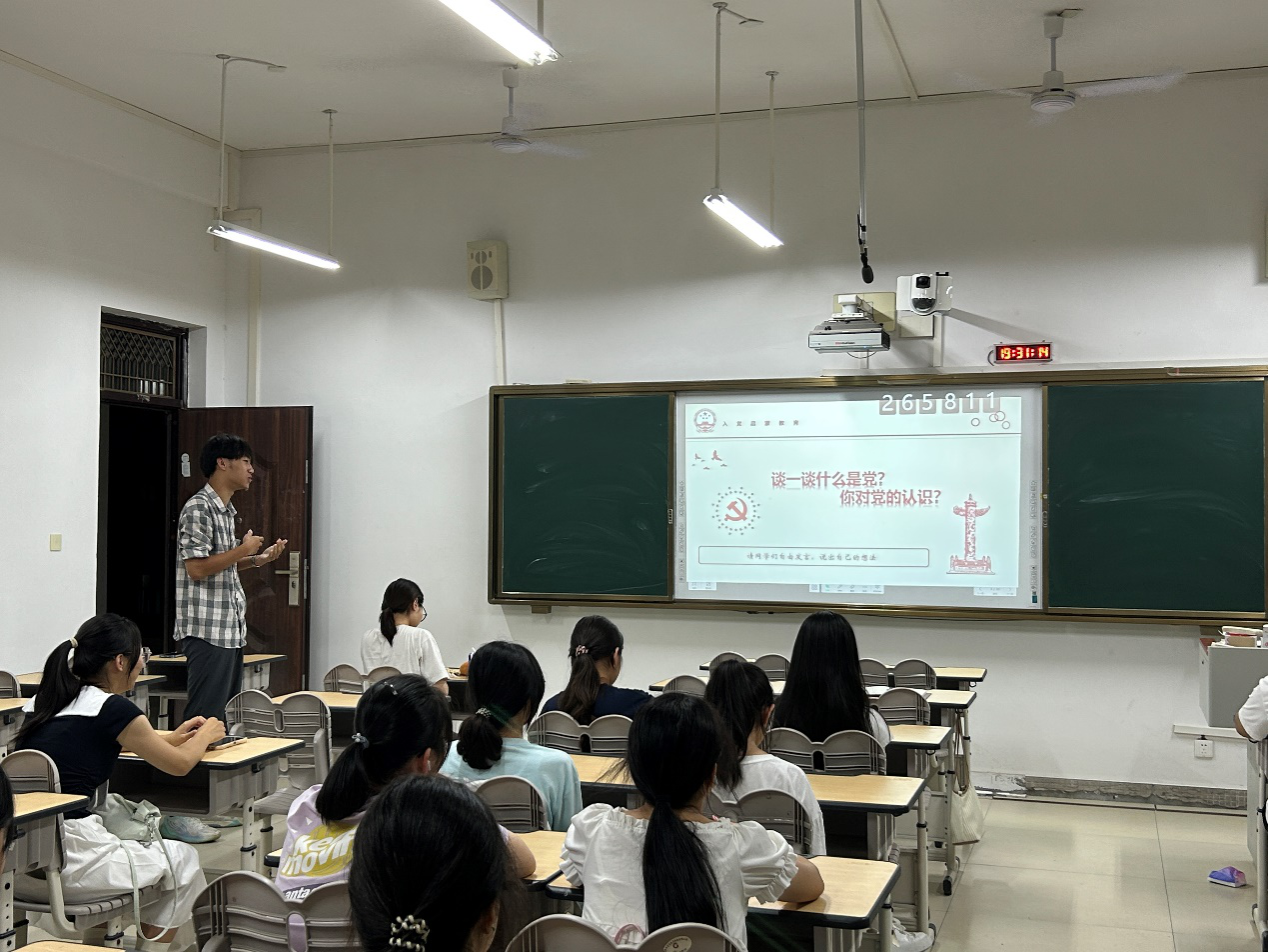 9月18日, 成人影视片 2025级大气科学班于武鸣校区2号教学楼308教室开展入党启蒙教育。此次会议由助理班主任覃欣欣同志与驻班党员古焯婷同志共同主持,班级全体同学参加。