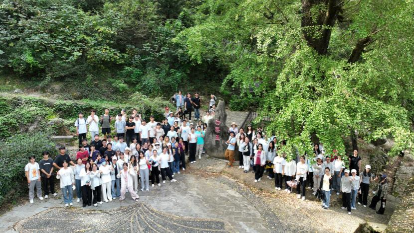 9月29日上午,阳光和煦,师生队伍抵达了桂林市灵川县海洋乡大桐木湾村,这里以广袤而绚烂的银杏林闻名遐迩。汪洋老师引导同学们细致观察,辨识裸子植物与被子植物,再结合地形地貌,细致入微地讲解现存银杏林分布背后的地理意义,让同学们明白其与当地气候、土壤等自然要素的紧密联系,从而更加深刻体会到自然与环境的整体性特点。期间,师生们还一同参观了银杏林区现存最大的银杏公树——被誉为“白果王”的参天古树,深感自然之奇伟。