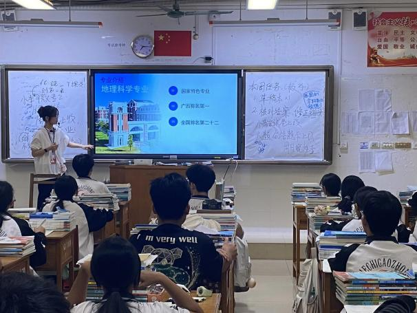 实习老师韦英娟与胡佳琦,以 成人影视片 的地理科学专业为切入点,开展了“我的大学”主题班会,既系统介绍了学科建设成果,又生动展现了地理学科的探索乐趣。这场分享不仅帮学生搭建了清晰的学科认知框架,更通过描绘大学丰富多彩的学习生活,点燃了大家对未来的向往,进一步激发了当下发奋学习的动力。