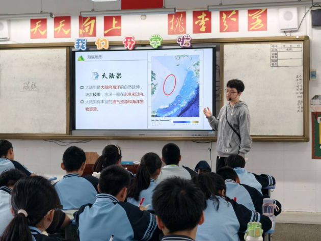 在课堂教学展示中,实习老师罗芯曼以“登高露营”为情境主线,贯穿课堂始终,教学设计层次清晰,环节衔接自然,注重引导学生从生活场景中理解地理概念。她在自评中表示,尽管课程整体逻辑较为顺畅,但在案例选取方面仍缺乏真实具体的实例支撑,语言表达的准确性也有待进一步提高。实习老师韦涵升的课堂则完整呈现了预设的教学环节,内容系统,结构清晰。他在自评中特别反思到了课堂节奏与互动设计方面的问题,指出由于课程以识记性知识为主,难度较低,导致课堂时间略有盈余;同时,课堂互动形式较为单一,以教师讲授和提问、学生被动回答为主,未能充分调动学生的主动性与参与积极性。