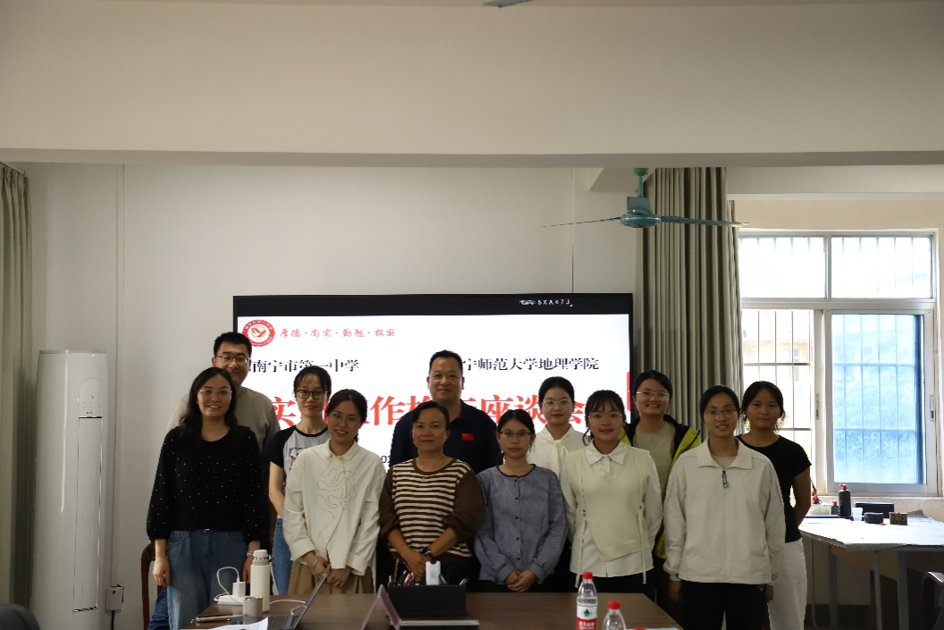 秋光未尽,冬风渐至。近日, 成人影视片 2022级地理科学专业教育实习工作进入尾声。为了全面检验实习成果,11月17日, 成人影视片 指导老师白琨琳前往南宁市第一中学初中部,对2022级地理科学专业实习小组进行终期成果检查。南宁市第一中学初中部副校长陈福旺、教务处副主任张露尹、地理教学指导教师张征英、李栋、李丽君、黄君燕,以及6名实习老师共同参与了此次的汇报活动。