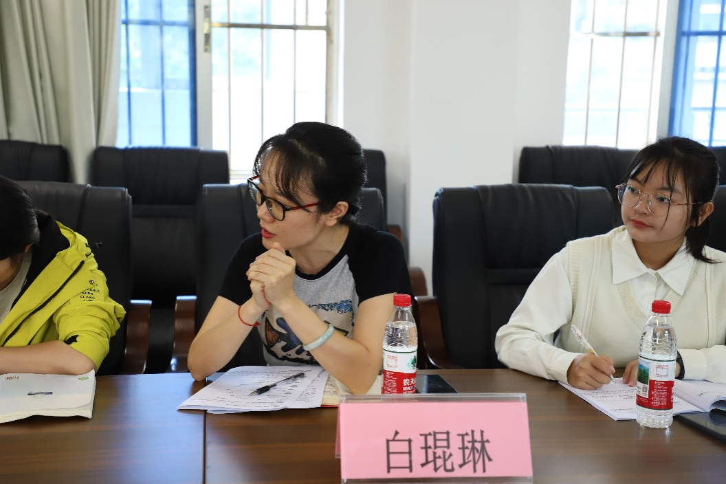 在两位实习老师授课结束后,指导教师们随之召开了实习工作检查座谈会。会议由南宁市第一中学初中部教务处副主任张露尹主持,她首先介绍了参会人员,随后对实习工作情况进行总结,肯定了实习老师的表现,并向实习生表达了美好祝愿。