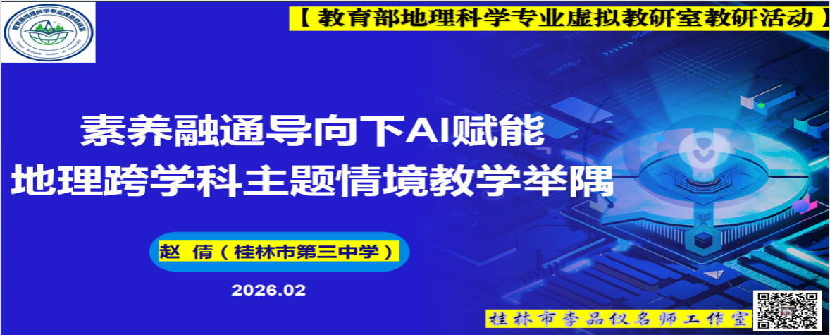 教育部地理科学专业虚拟教研室始终以“聚焦虚拟教研,促进协同育人”为核心,依托 成人影视片 地理科学国家一流专业、国家一流课程等平台,联合西南大学、云南师范大学、贵州师范大学、重庆师范大学等西南地区 11所高校及 2 家企业,构建了跨区域、全覆盖的“智能 +”教研生态。 2026年2月5日晚,该教研室教研活动在线上顺利开展,聚焦“数智化赋能‘1+X’跨学科主题教学”。此次活动由桂林李品仪名师工作室承办,李品仪、田丰、赵倩三位老师带来精彩讲座,为地理“1+X”跨学科融合与技术赋能实践提供了宝贵经验。活动吸引全国多地师生在线参与,生动践行了虚拟教研室“课程共建、资源共享、师资共培”的建设理念。