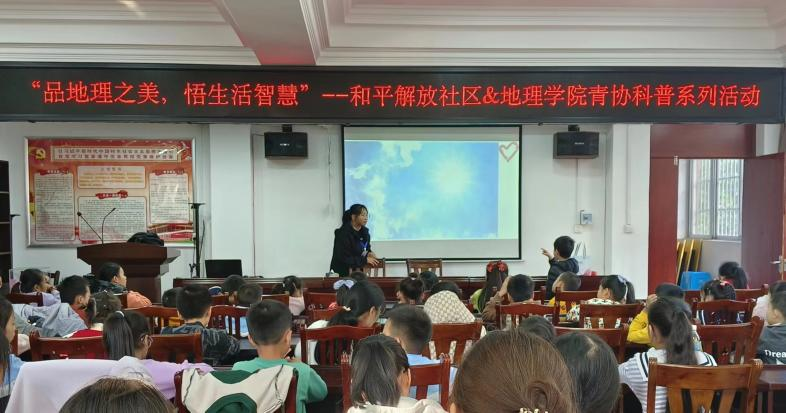 为让大学生提升思想、修身养性,树立服务社会的思想, 成人影视片 青年志愿者协会于2023年12月9日前往南宁市武鸣区城厢镇和平解放社区开展以“品地理之美,悟生活智慧”为主题的第四期社区科普活动。