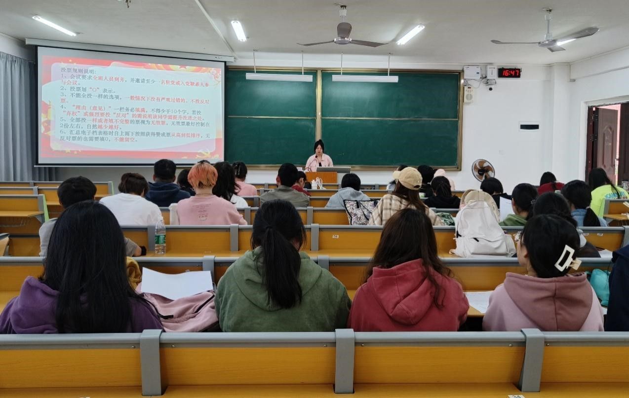 为进一步加深同学们对党的认识,激发共青团员的入党热情,增强组织的凝聚力,11月22日, 成人影视片 2022级地科三班在武鸣校区实验2-A202教室召开2023年第一批入党积极分子推选会议。2022级地科三班全体同学及驻党李韩琪参加会议,会议由团支书欧阳婷婷主持。