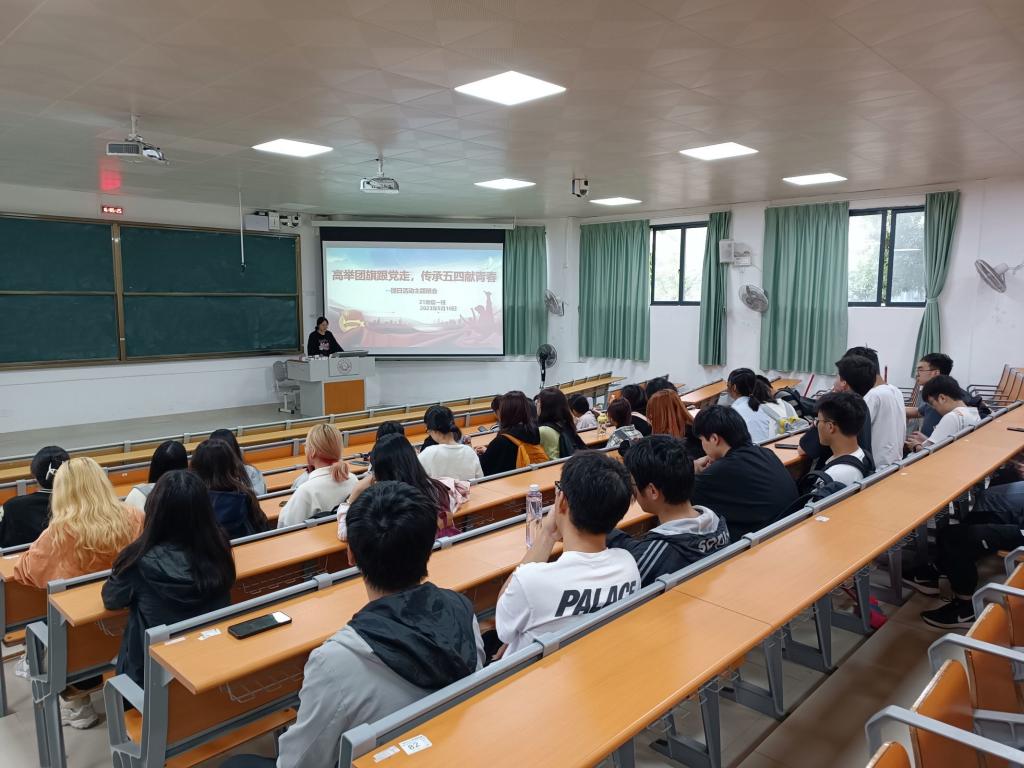 为弘扬爱国、科学、民主、进步的五四精神,不断增强团员的光荣感、责任感和使命感,提高青年政治素养,加强团员之间的凝聚力, 成人影视片 2021级地信一班于2023年5月10日在武鸣校区1号教学楼115教室开展“高举团旗跟党走,传承五四献青春”主题团日活动,活动由团支书杨碧霞主持,21地信一班全体同学共同参与。