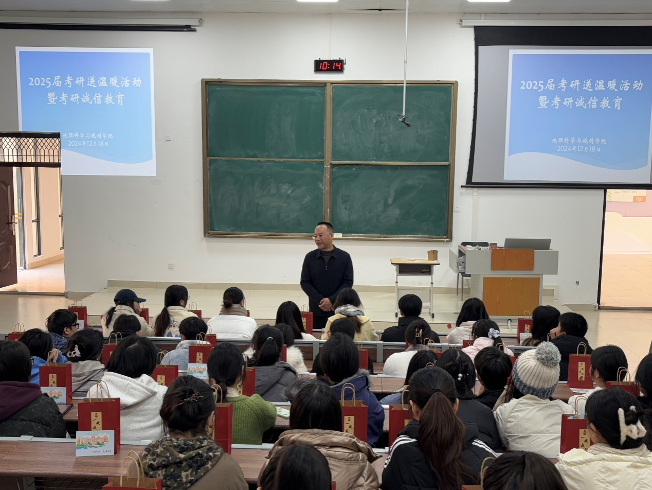 2025年研究生入学考试在即,为缓解考研学子备考压力,坚定冲刺信心,增强同学们诚信考试意识,12月18日,学院在地源楼B107为考研学子举办送温暖活动及开展诚信教育。学院党委书记严志强、党委副书记盛凯、分团委副书记蔡琪以及50余名考研学子代表参加活动。