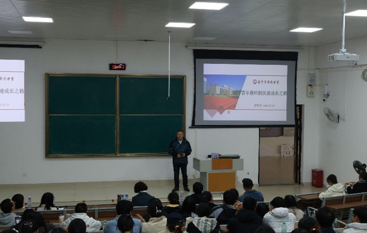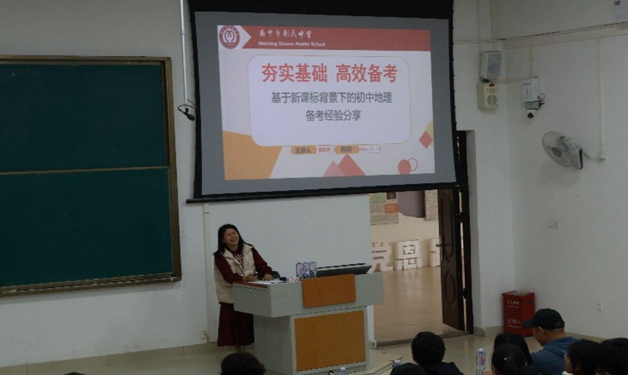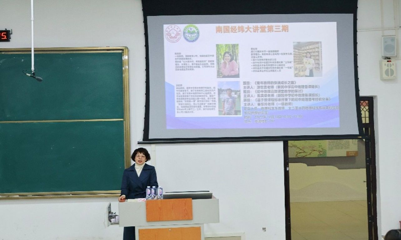 2024年12月10日, 成人影视片 邀请了南宁市新民中学初中地理备课组长陈美荣、一级教师秦东玲、高中地理备课组长游世勇老师在武鸣校区地源楼B-107教室开展了“初中地理高效课堂教学的探究”、“基于新课程标准背景下的初中地理备考经验分享”与“青年教师的快速成长之路”的报告讲座。此次报告会由地理科学系主任宋立全和副主任韦晨策划、宋立全主持,地理科学系教师、大二至大四地理科学专业本科生及学科地理硕士研究生参会。