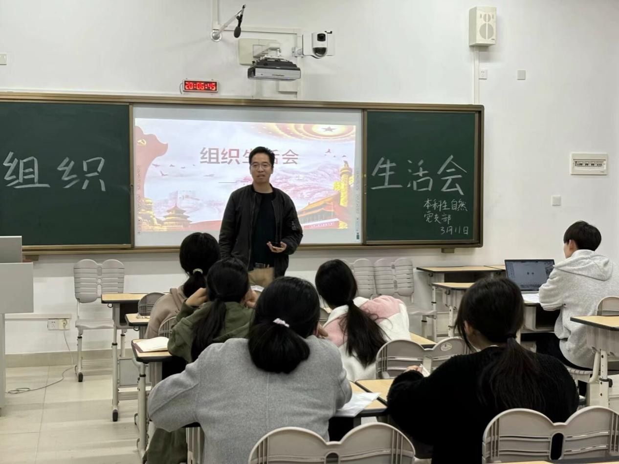 2025年3月11日, 成人影视片 本科生自然党支部于武鸣校区二号教学楼410教室召开支部组织生活会,纪检委员王梓阳主持会议。