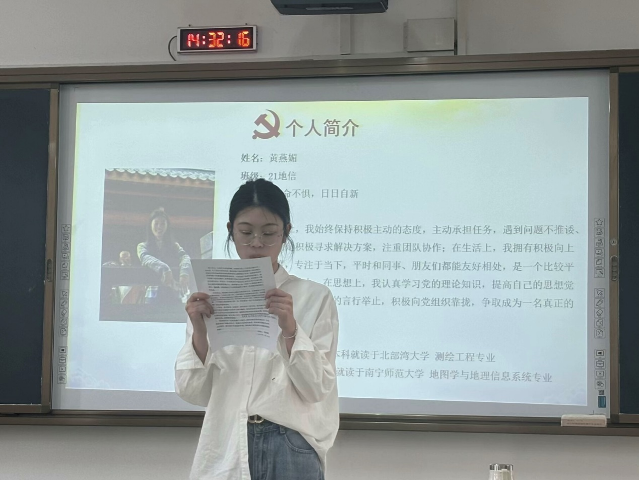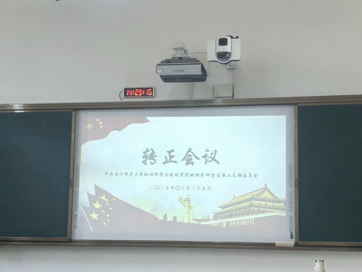 2025年3月25日下午, 成人影视片 地理学研究生第二党支部于武鸣校区1号教学楼203教室召开党员转正会议。会议由党支部书记龙璐瑶同志主持,支部全体党员参会。