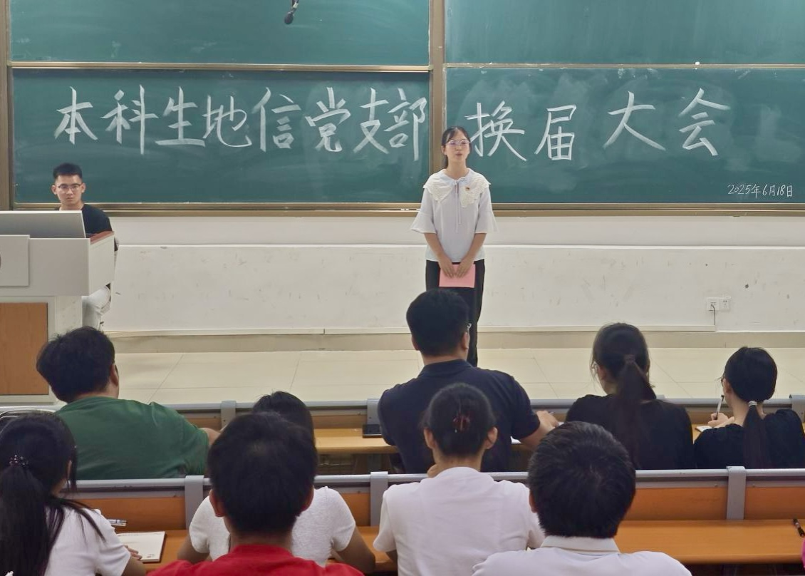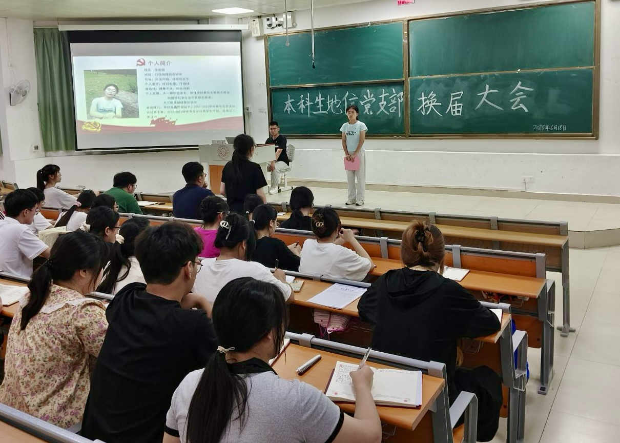 6月18日, 成人影视片 本科生地信党支部在武鸣校区1号教学楼114教室召开支部委员换届大会。本次会议由党支部宣传委员方家鑫同志主持,支部全体党员参会。