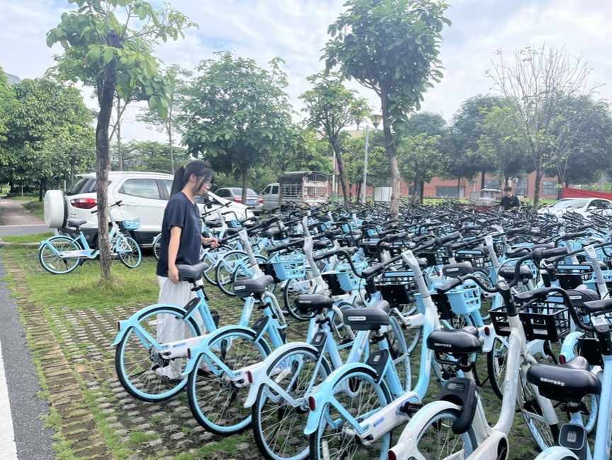 (支部党员进行单车摆放)