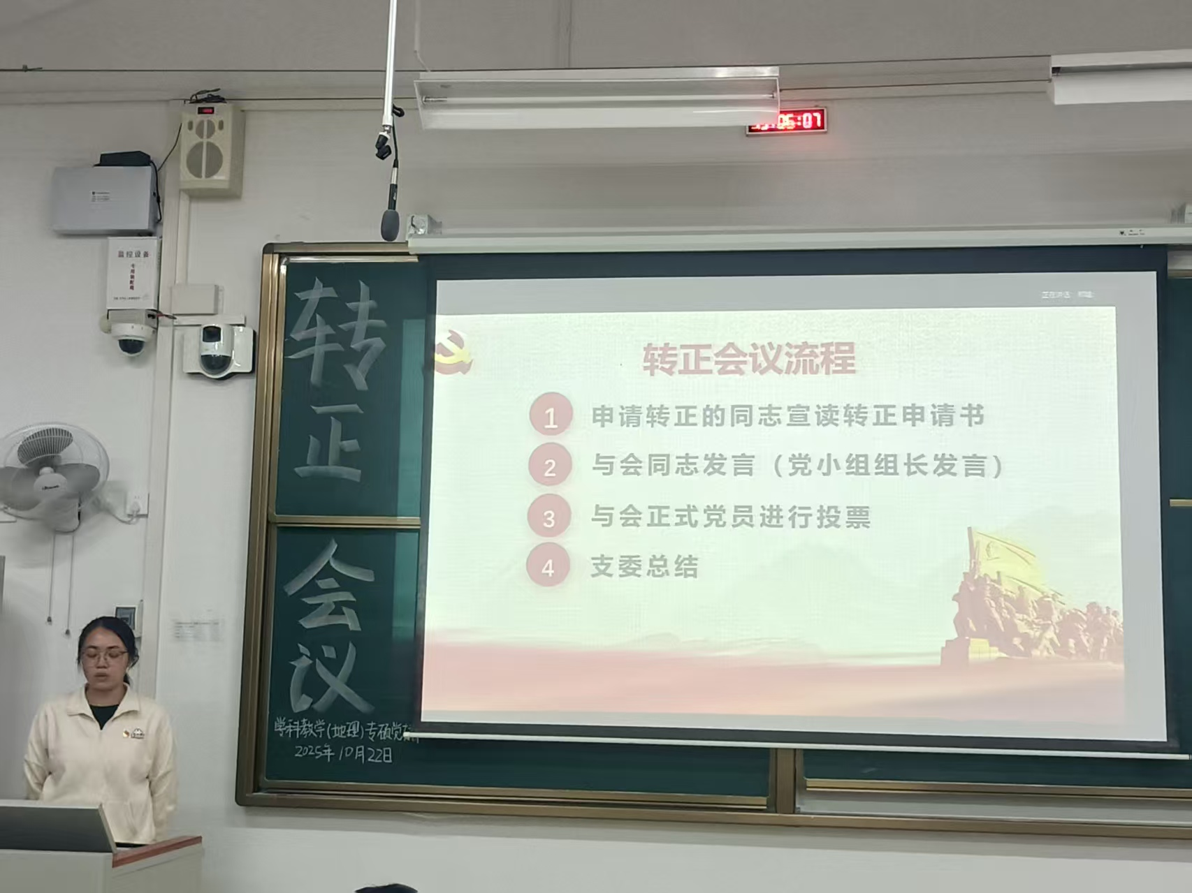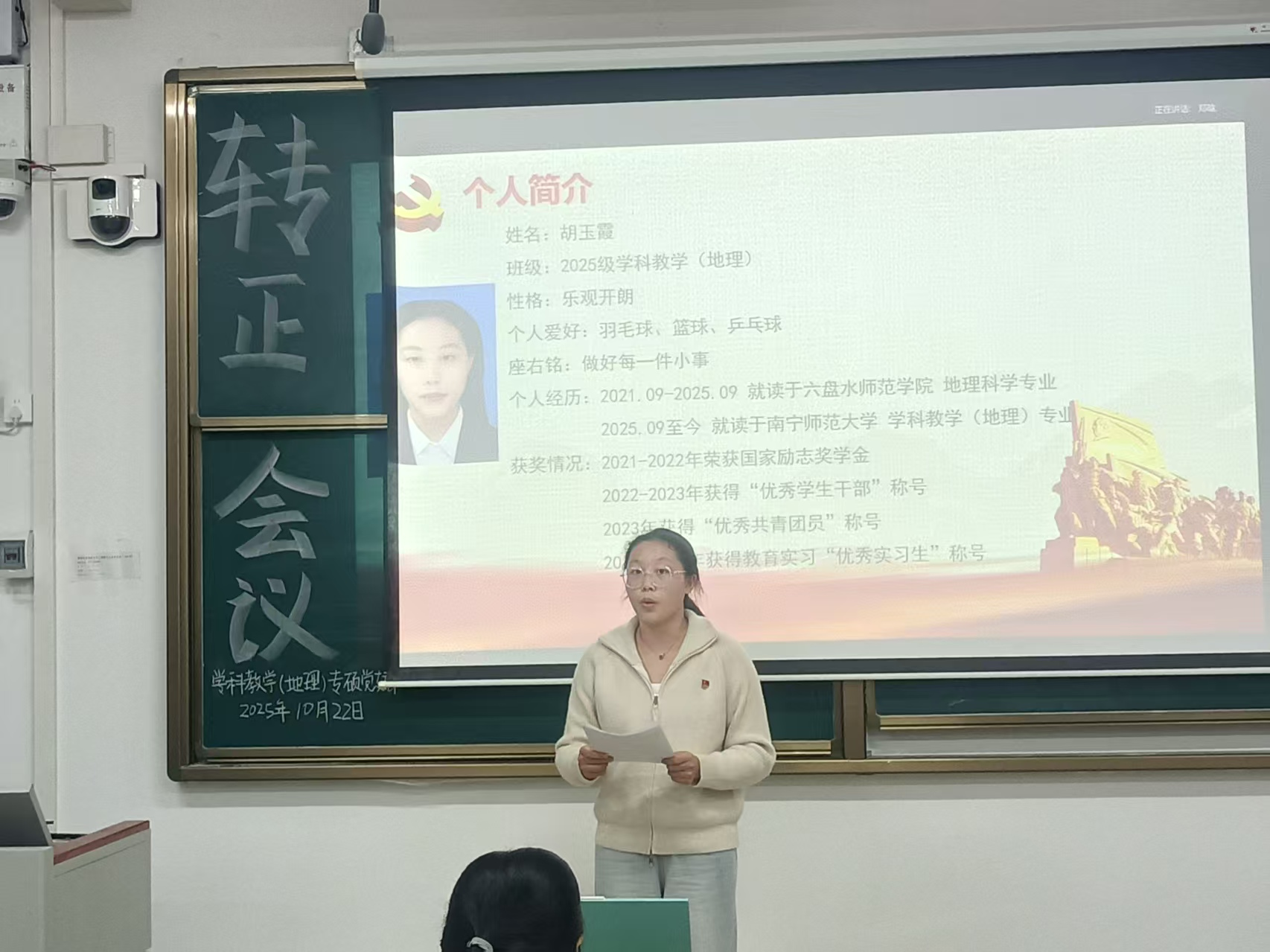 10月22日, 成人影视片 学科教学(地理)专业硕士党支部党员大会在武鸣校区一号教学楼412教室召开,主要讨论并审议胡玉霞同志预备党员转正事宜。支部应到会有表决权党员45名,实到会有表决权党员44名,符合规定人数。大会由组织委员黄小同志主持。