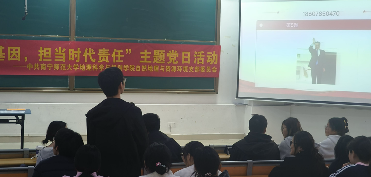 11月30日, 成人影视片 本科生自然党支部于武鸣校区一号教学楼114教室开展“传承红色基因,担当时代责任”主题党日活动。此次活动由党员郭香凝主持,党支部全体成员、学院各年级积极分子代表及学生代表共同参与。