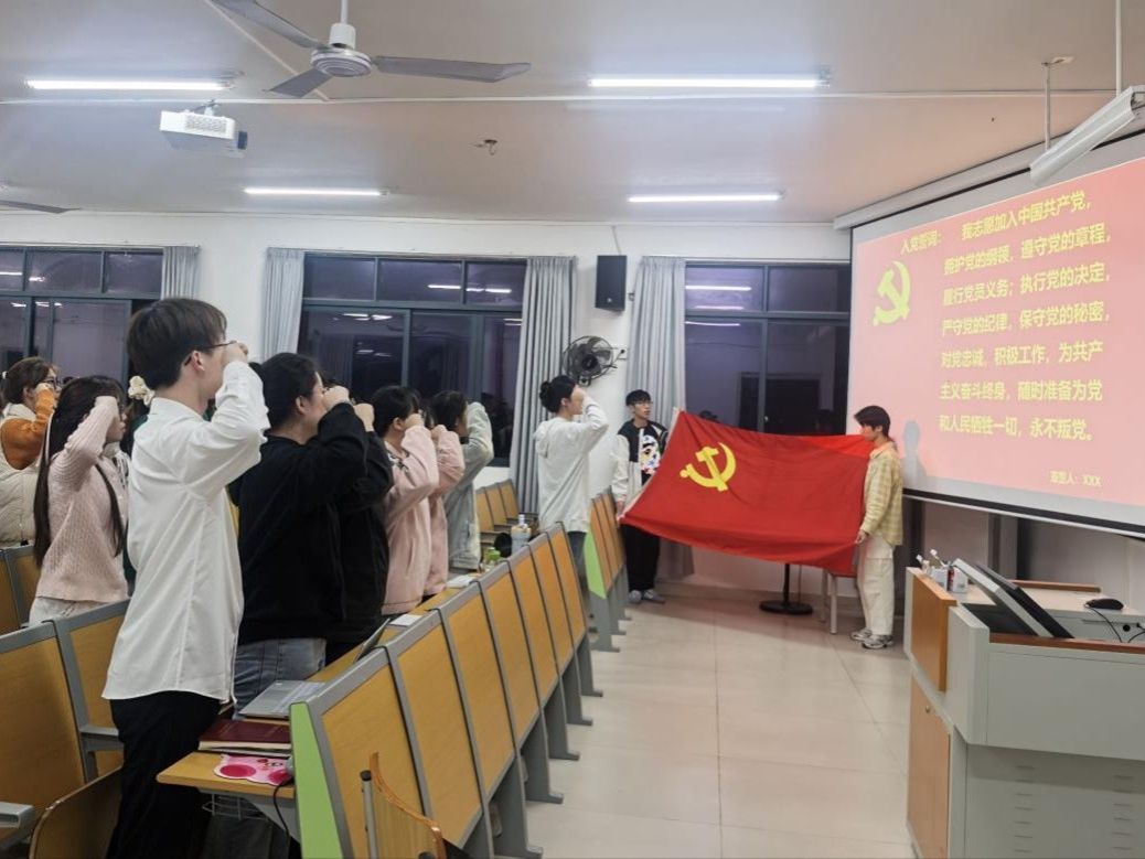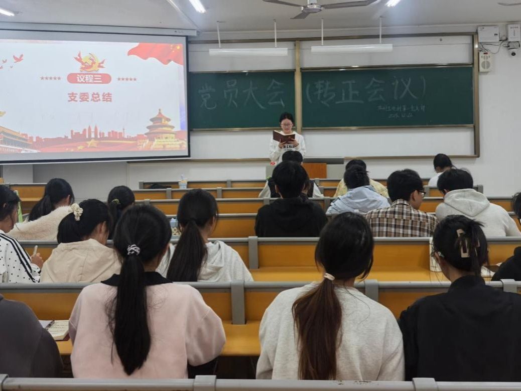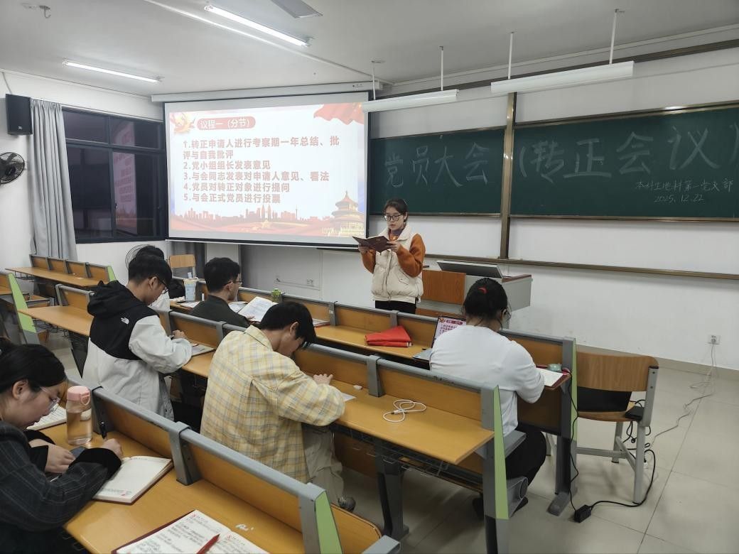 12月22日, 成人影视片 本科生地科第一党支部在武鸣校区2号实验楼A-202教室顺利召开2025年12月预备党员转正会议。此次会议由党支部书记黄吉慧主持,党支部全体成员参加。