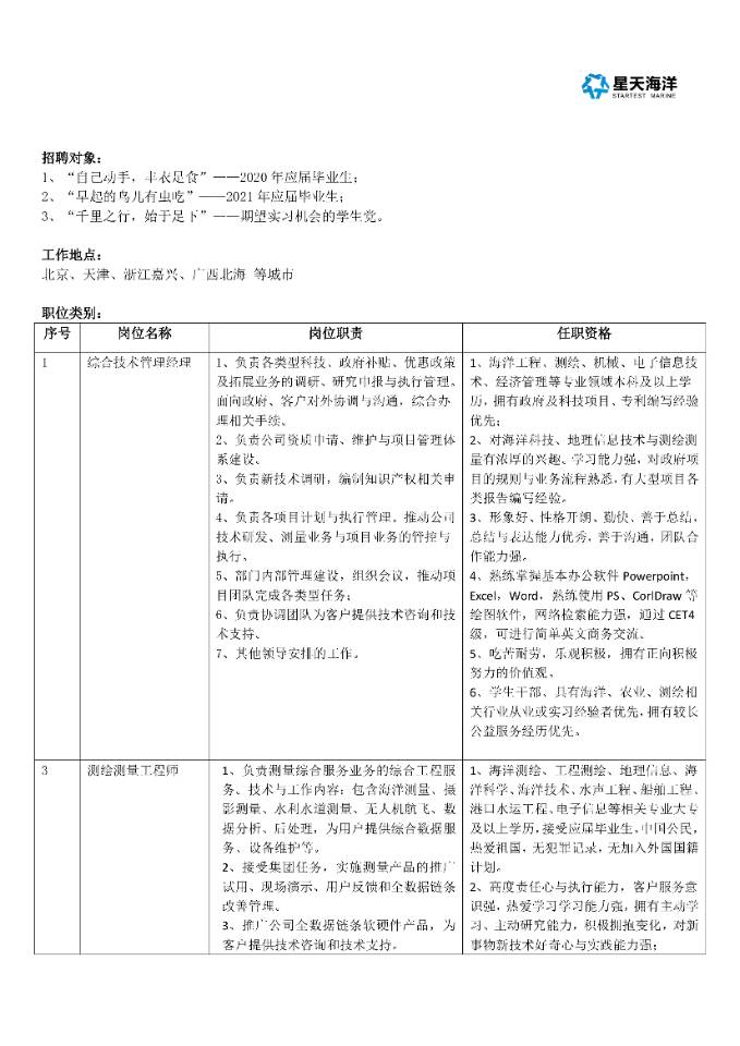 北海星天科技有限公司招聘简章