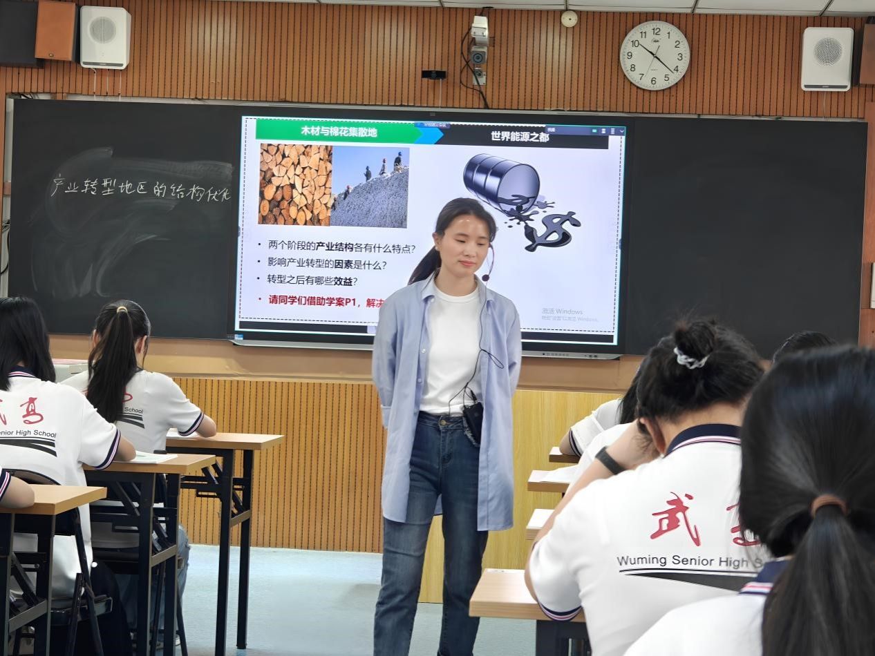 图3:武鸣高中莫钟慧老师在上《产业转型地区的结构优化——以柳州为例》