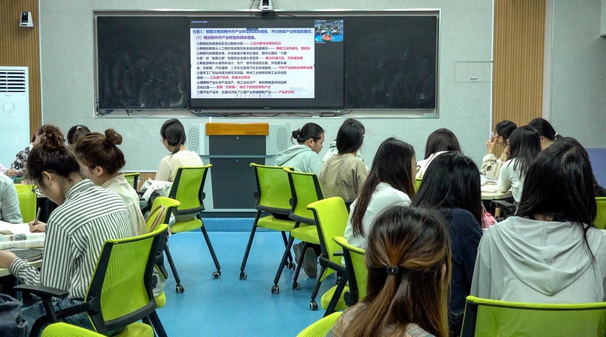上午8时,在武鸣高中凌飞楼录播室及 成人影视片 地源楼B211教室,2021级地理科学专业全体地理学子一起观摩了莫钟慧、朱筱筠、周君三位老师带来的三节《产业转型地区的结构优化——以美国休斯顿为例》同课异构课程。作为未来的地理教师,2021级地理学子在课堂上认真听课、及时记录,展现出积极好学的精神风貌。通过观摩这三节课,同学们清楚地发现三位教师对同一教材内容不同的处理方式,并认识到不同的教学策略所产生的不同教学效果。通过本次教育见习观摩活动,使同学们得到了许多教学启示,开阔了同学们的教学思路,丰富了教育见习经验,并对未来如何成为一名优秀的地理教师有了更多思考。