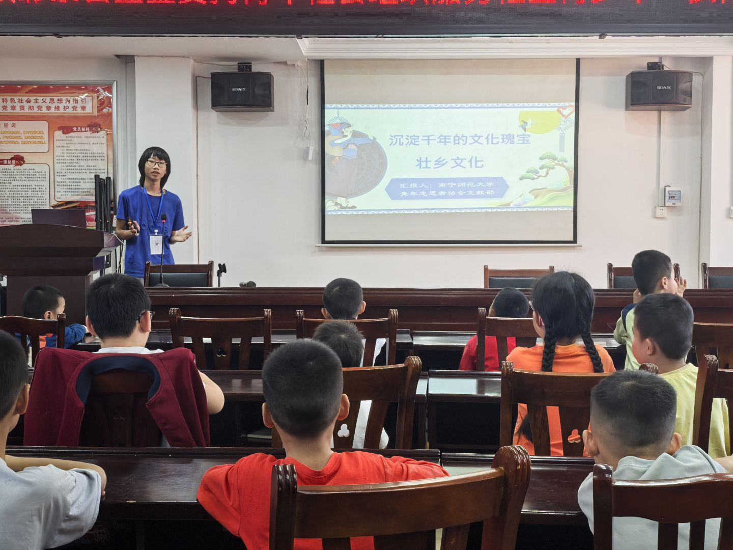 活动伊始,志愿者首先向小朋友介绍了壮族的建筑特色、传统服饰和节日活动等文化元素。小朋友聚精会神地聆听,踊跃举手发言,现场气氛热烈。紧接着,在志愿者的引导下,小朋友们亲手制作了中国结和灯笼等传统手工艺品,这不仅锻炼了他们的动手能力,更让他们亲身感受到传统文化的独特魅力。随后,志愿者组织小朋友开展投壶游戏,小朋友有序参与,游戏过程氛围欢乐,小朋友们不仅体验到传统游戏的乐趣,还增进了彼此之间的友谊。最后,全体志愿者进行合影留念。至此,本次活动圆满结束。