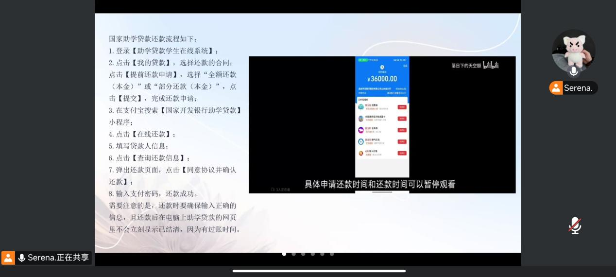 为深化诚信教育,强化国家助学贷款毕业生还款责任意识,6月23日晚, 成人影视片 勤工部开展“承助梦之光,践诚信之诺”线上主题会议活动,148名毕业生云端参会。