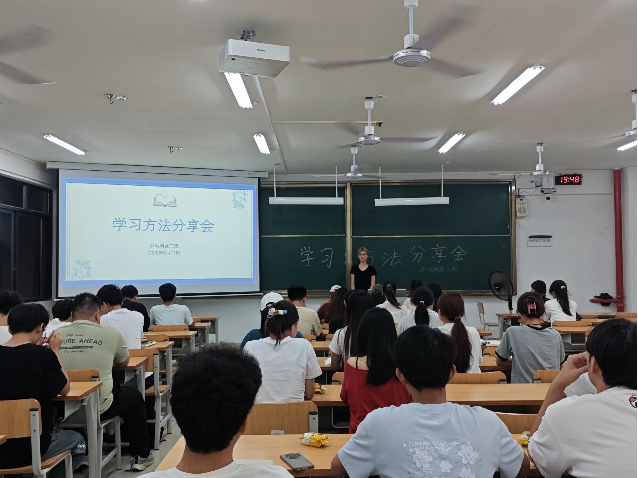 6月19日晚,2024级地科类二班在武鸣校区实验2号教学楼C301教室举办读书分享会。本次活动由学习委员陈雨彤主持,全班同学共同参与。